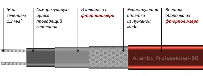 Кабель нагревательный саморегулирующийся Atlantic Professional-60