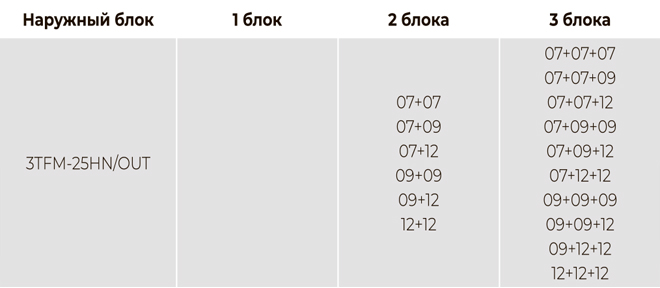 Данная модель наружного блока рассчитана на подключение 3 внутренних блоков и имеет общую площадь охлаждения до 75 кв.м.