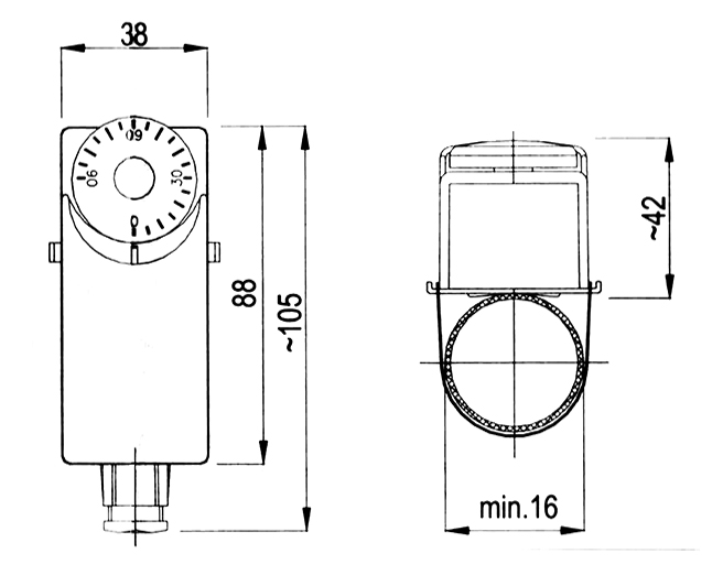 Термостат контактного управления — биметаллический чувствительный элемент внешней регулировки, установленный на водопроводных трубах или котлах. Предназначен для защиты теплообменников от низких температур.