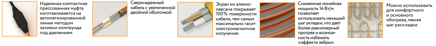 • Толщина кабеля составляет 6 мм с погонной мощностью 18В/м