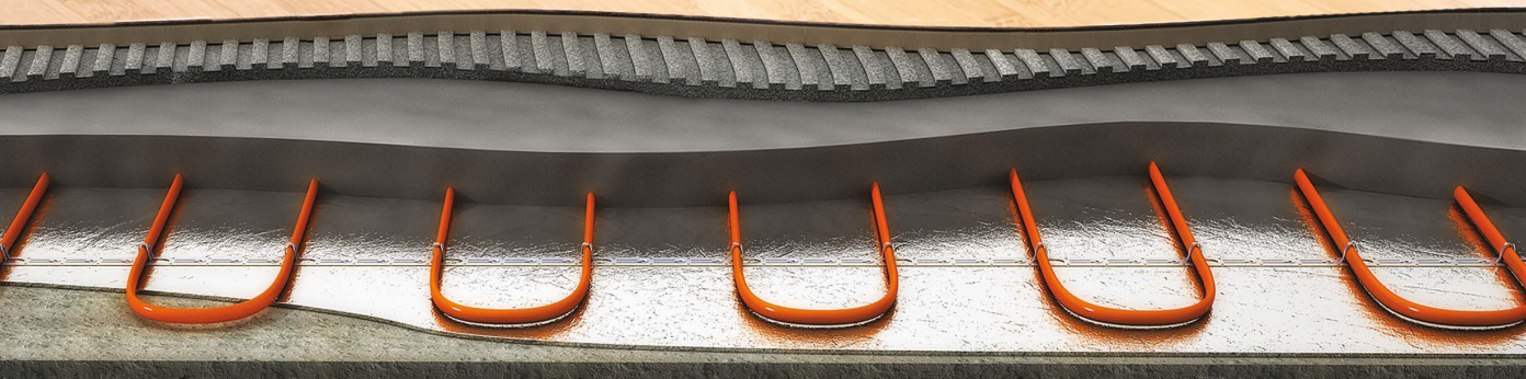 • Монтаж производится в слой цементно-песчаной стяжки 3-5 см