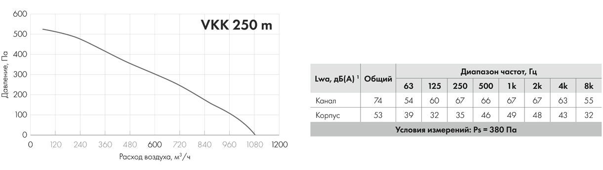 Lwa, дБ(А) общее — приведенное звуковое давление указано для вентиляторов без шумоизолирующего бокса.