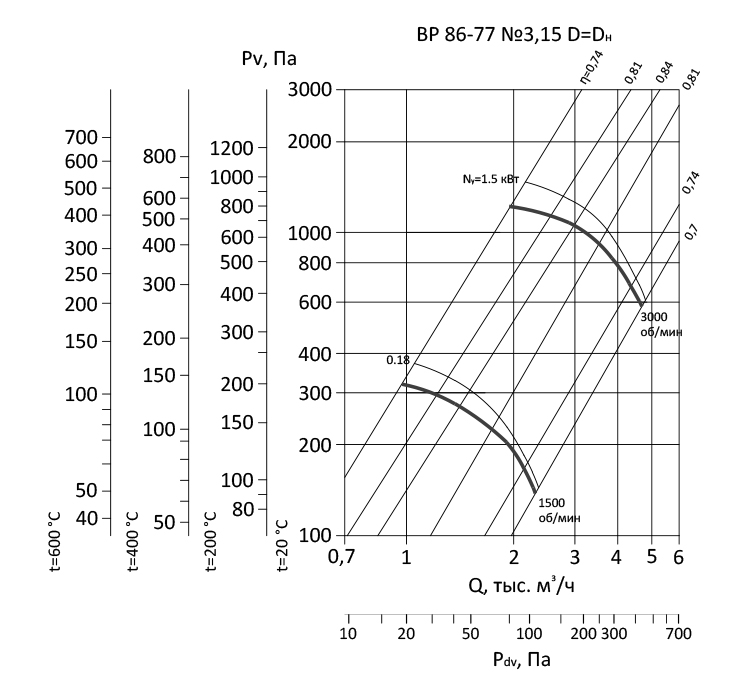 Радиальный вентилятор низкого давления ВР 86-77 / №3,15 / 1,5 кВт / 3000 об./мин. / Прав / 0°